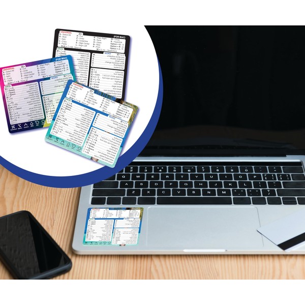 A Pack of 3 Designs for MAC Word & Excel Keyboard Shortcut Stickers | No Residue | MAC Reference Guide & Cheat Sheets | Includes 3 Unique Designs