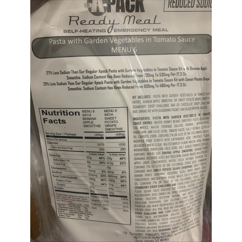 Get ready for your next outdoor adventure with these emergency meal packs. Perfect for camping, hiking, or any outdoor excursion, these packs contain everything you need to prepare a hearty meal. Each pack includes a main meal such as pasta/rice, meats and vegetables, as well as seasonings and spices to add flavor to your dish. All packs include a smoothie & and an additional small snack like crackers/protein bar, etc.