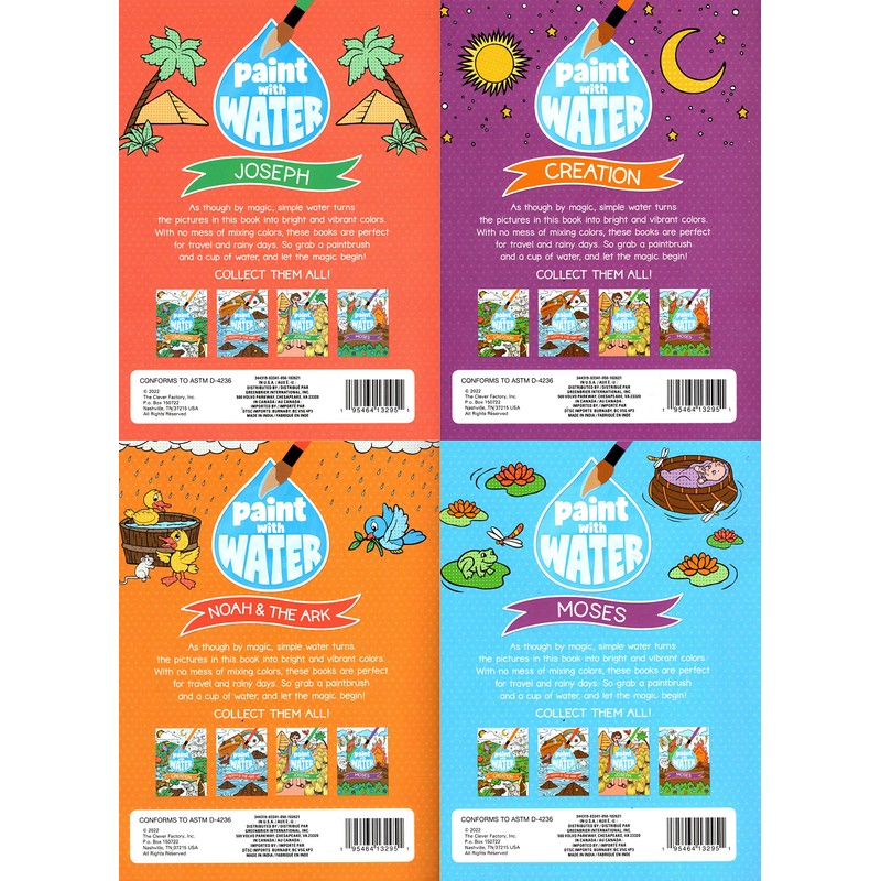 A Paint with Water - Book from the Bible Moses, Noah&The Ark, Creation, Joseph - Just Add Water - Coloring Books (Set of 4 Books)