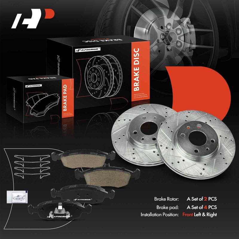 - [Buy with Confidence]: A-Premium offers a one-year unlimited-mileage guarantee on our meticulously crafted drilled and slotted disc brake rotors and ceramic pads. We offer a wide variety of automotive accessory categories, ensuring that you can hit the road with peace of mind.