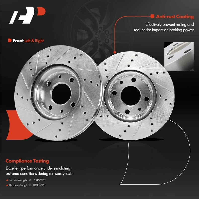 - [Package Details]: 2 x Drilled and Slotted Disc Brake Rotor + 4 x Disc Ceramic Brake Pads + Brake Lubricant (High-temperature Grease) + Installation Hardware. Complete kit purchase for more time-saving and peace of mind.