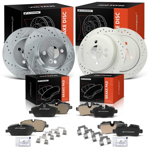 - [Buy with Confidence]: A-Premium offers a one-year unlimited-mileage guarantee on our meticulously crafted drilled and slotted disc brake rotors and ceramic pads. We offer a wide variety of automotive accessory categories, ensuring that you can hit the road with peace of mind