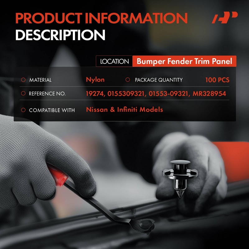 A-Premium 100PCS Nylon Bumper Fender Trim Panel Clip Retainer Compatible with Nissan Altima, Frontier, Murano, Pathfinder, Maxima, Armada, Juke, Leaf & Infiniti QX60, Q50, G20, G25 - For 8 mm Hole