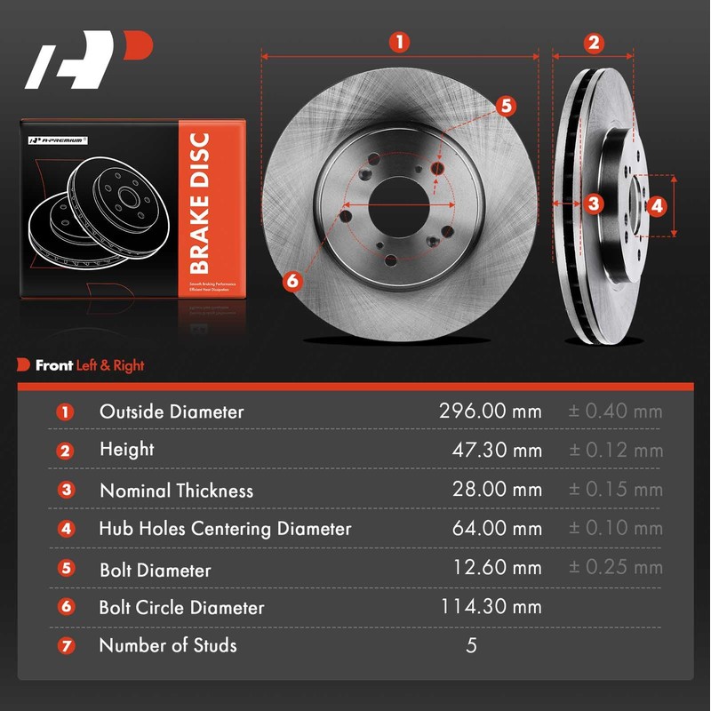 A-Premium 11.65 inch (296mm) Front Vented Disc Brake Rotors Compatible with Select Honda and Acura Models - CR-V 2007-2016, Crosstour 2012-2015, Accord Crosstour 2010-2011, RDX 2007-2012, 2-PC Set