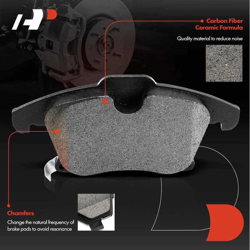 • [Specification]: Mounting Bolt Hole Quantity: 5; Outside Diameter (IN): 11.81; Discard Thickness (IN): 1.04; G3000 metallurgy and metallic coating of brake discs can effectively prevent rust and corrosion, extending the lifespan. Brake pads are manufactured in a clean room using MTF602 carbon ceramic formula, which excels in low dust and noise reduction, and meets Leaf Mark certification with a copper content of less than 5%