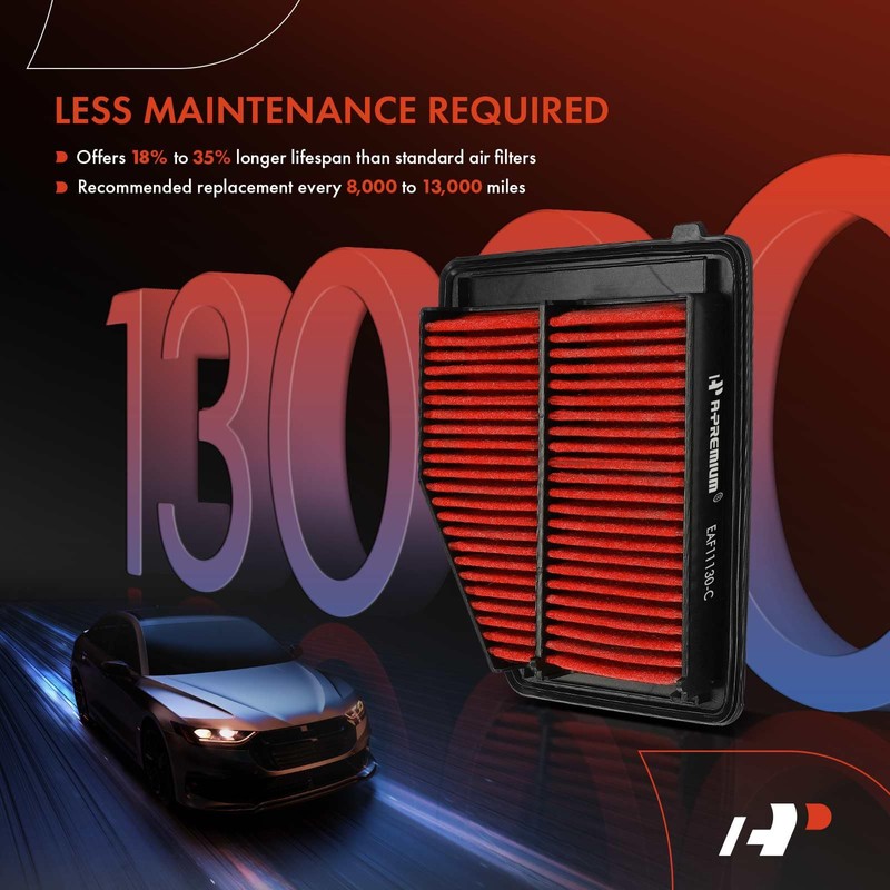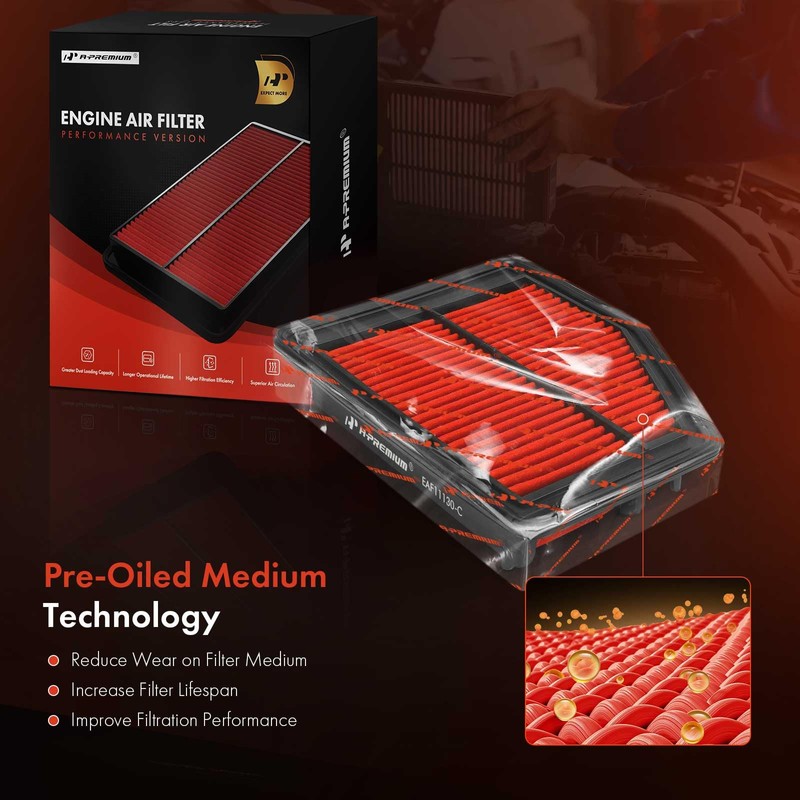 • [Excellent Protection]: A-Premium air filters employ pre-oiled media technology, where an oil film coats the filter fiber, enables better adsorption of minute dust particles, offering higher filtration efficiency than standard air filters, enhanced air flow, and greater dust holding capacity.