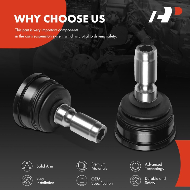 - [Professional Replacement]: This ball joint is replacement for above model's suspension system, and may help you resolve those problems: ① loose or shaky steering ② strange squeaky and clunky noises from suspension ③ uneven tire wear ④ steering wheel drifting to one side