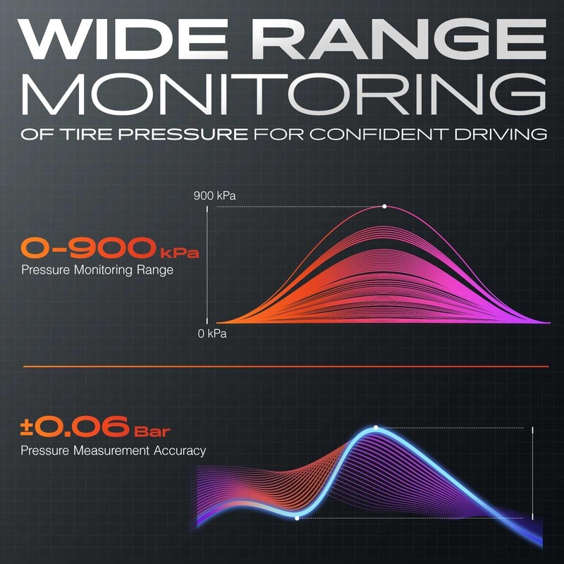• [Precision Monitoring]: Real-time and accurate monitoring of tire pressure, equipped with a high-precision chip to ensure timely and accurate data transmission; Combined with long-lasting CR2050 battery, it provides an ultra-long life span, adapts to extreme environments from -40℃ to 120℃, and delivers stable and reliable performance. It ensures you can always stay informed about your tire conditions during every drive, enhancing driving safety.