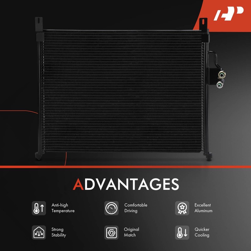 - [Maximize Heat Transfer]: 100% Brand New Item. Direct Bolt-on OE Replacement A/C Condenser. This aluminium ac condenser kit maximizes cooling efficiency and accelerates the heat dissipation. Please Check Fitment and Dimensions before ordering by using the Amazon's Confirmed Fit Tool above or checking the Product Description below