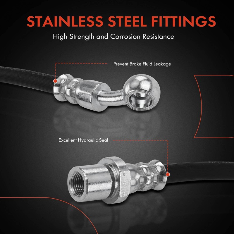- [Superior Quality]: A-Premium Brake Hydraulic Oil Hose consists of EPDM rubber and stainless steel fittings, meeting DOT certification standards, Federal Motor Vehicle Safety Standards(FMVSS 106) and SAE J1401 Standards. Premium craftsmanship and materials ensure superior quality and durability, and excellent performance enhances the whole braking system.