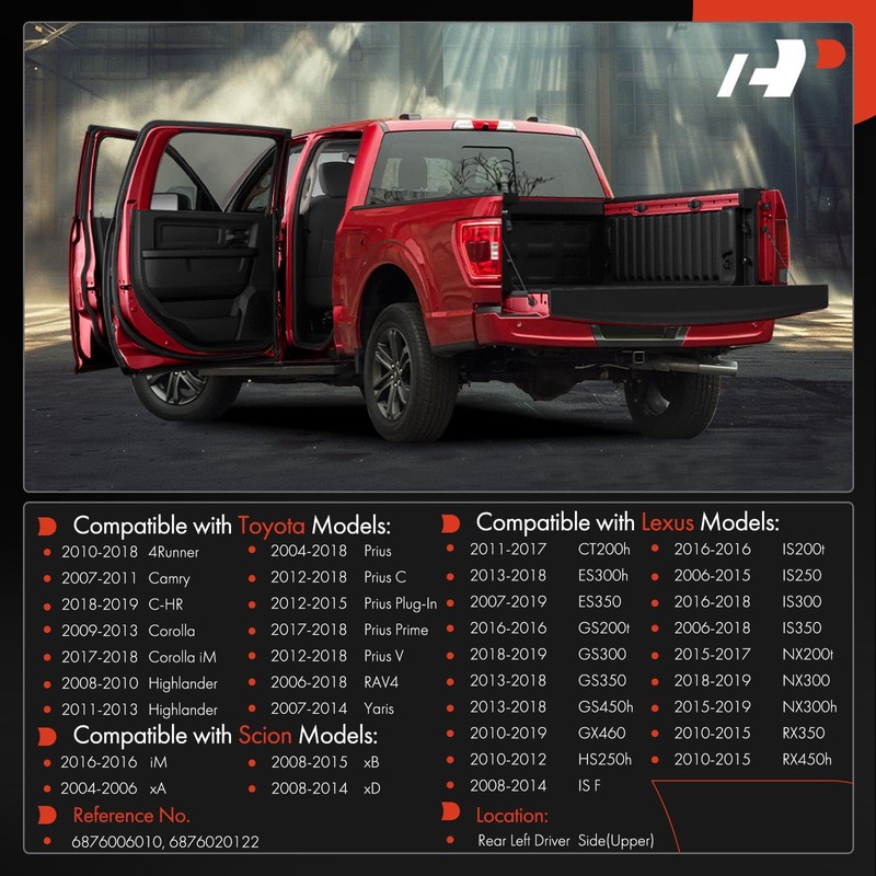- [Vehicle Fitment-2]: Compatible with Scion iM 2016-2016, xA 2004-2006, xB 2008-2015, xD 2008-2014; Compatible with Toyota 4Runner 2010-2018, Camry 2007-2011, C-HR 2018-2019, Corolla 2009-2013, Corolla iM 2017-2018, Highlander 2008-2010, Highlander 2011-2013 (Hybrid, Hybrid Limited), Prius 2004-2018, Prius C 2012-2018, Prius Plug-In 2012-2015, Prius Prime 2017-2018, Prius V 2012-2018, RAV4 2006-2018, Yaris 2007-2014