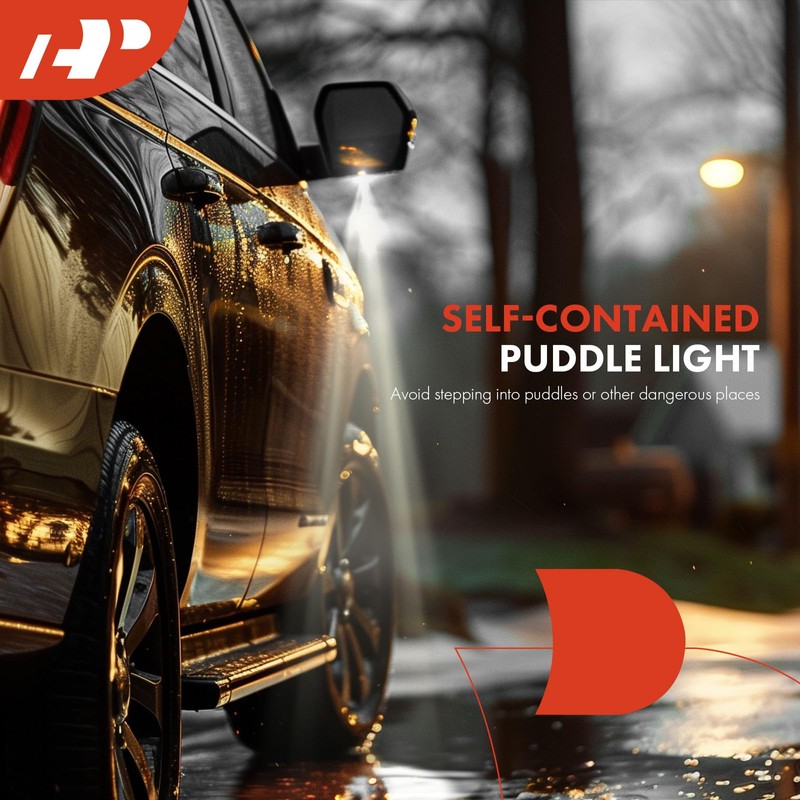 - [Specifications]: ① Position: Front Left Driver Side; ② Color: Gray; ③ Glass Type: Flat; ④ Mirror Adjustment Method: Powered; ⑤ Foldaway: Yes; ⑥ Folding Type: Power; ⑦ Turn Signal Indicator: Yes; ⑧ Blind Spot Detection: No; ⑨ Heated: Yes (Also fits Non-Heated); ⑩ Puddle Light: Yes; ⑪ Memory Function: Yes; ⑫ Plug Configuration: 13 prong