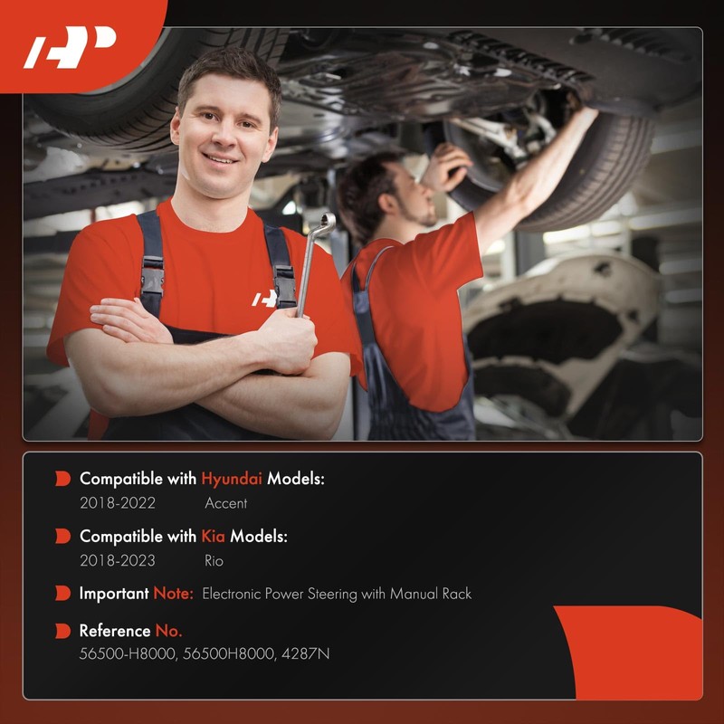 - [Vehicle Fitment]: Compatible with Hyundai Accent 2018-2022; Compatible with Kia Rio 2018-2023 --- It comes with Inner Tie Rod; Electronic Power Steering with Manual Rack