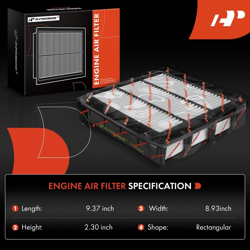 • [Enhanced Performance]: A-Premium Engine Air Filter uses fine filtration media to capture all kinds of debris without obstructing airflow, removing dangerous particles, improving engine performance and increasing engine efficiency.