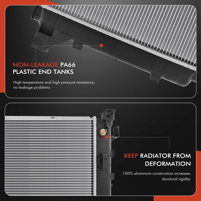 • [Advantage]: A-Premium Radiator is manufactured and tested to the strictest standards for superior performance to restore the vehicle's cooling system performance to optimum operating condition.