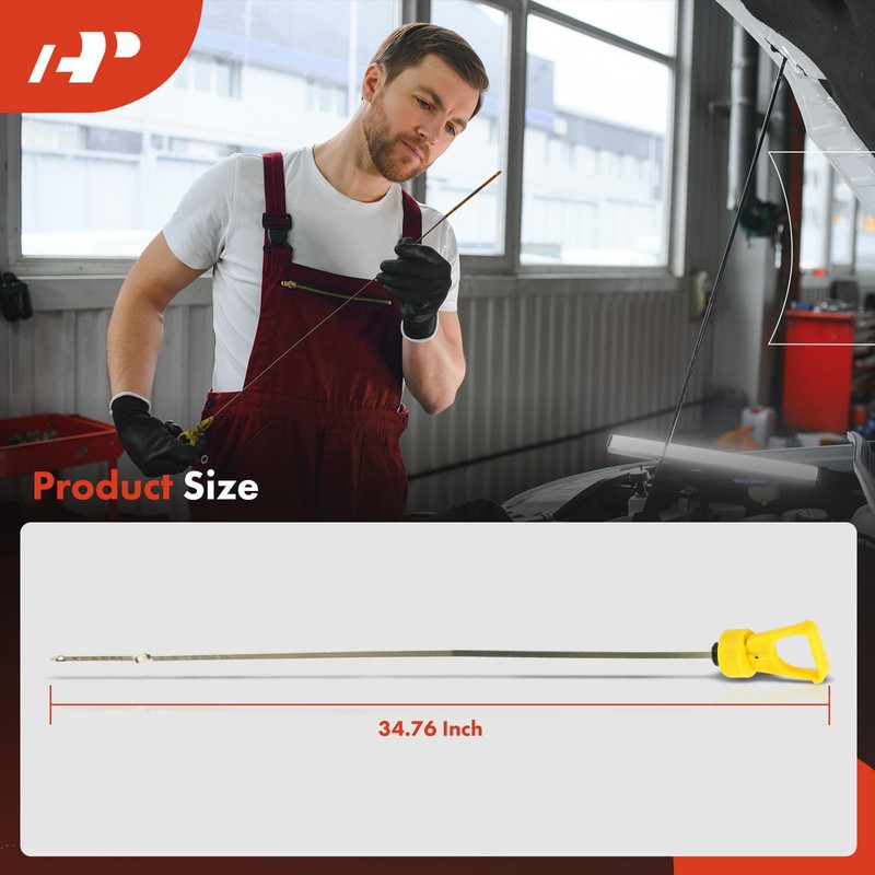- [Specifications]: ①Dipstick Material: Stainless Steel; ②Handle Material: Plastic; ③Dipstick Length: 32.68 inch (83.01 cm); ④Overall Size: 34.76 inch (88.29 cm); ⑤Fitment Type: Direct Replacement