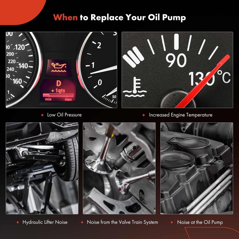 • [Engine Oil Pump]: The oil pump is the power source for oil circulation in the engine lubrication system. It circulates oil to the engine bearings, camshafts and pistons, among other components, reducing the risk of engine wear. A failed oil pump will cause low oil pressure, engine overheating, and an unusual noise coming from the engine. If you notice any of these symptoms, you need to replace your oil pump.