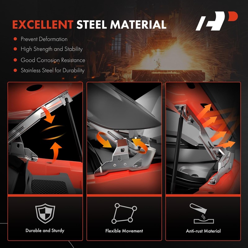 - [Features]: The hood hinge is a rotating mechanism that helps opening and supporting the hood. It is mostly made of excellent stainless steel which possesses the the advantages of rust resistance, deformation resistance, high strength and stability. The A-Premium hood hinge is featured with a sturdy structure and strong load-bearing capacity