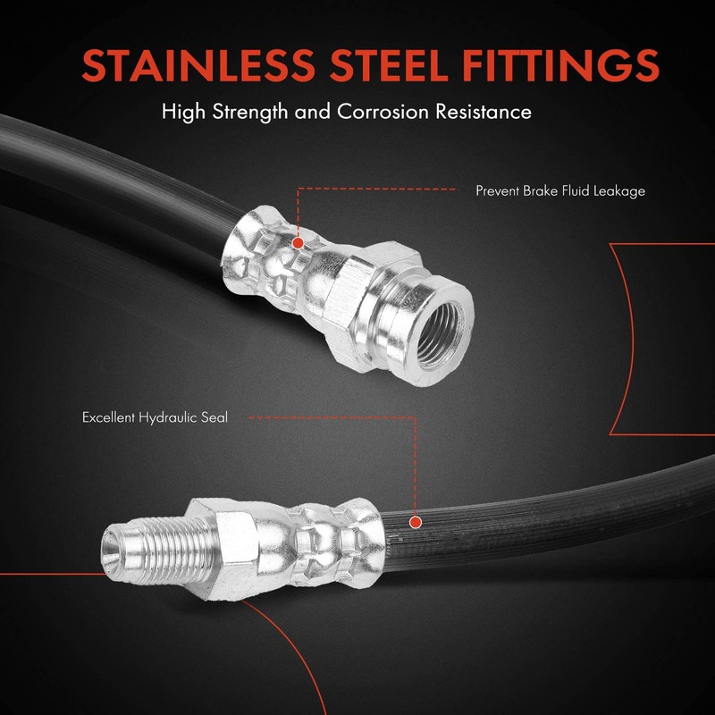 • [Superior Quality]: A-Premium Brake Hydraulic Oil Hose consists of EPDM rubber and stainless steel fittings, meeting DOT certification standards, Federal Motor Vehicle Safety Standards(FMVSS 106) and SAE J1401 Standards. Premium craftsmanship and materials ensure superior quality and durability, and excellent performance enhances the whole braking system.