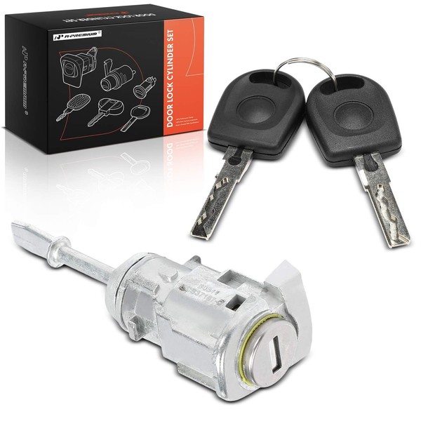 A-Premium Front Left Driver Side Door Lock Cylinder Kit with Keys Compatible with Volkswagen Jetta 1999-2010, Door Lock Cylinder Set for 1U0837167D, 1U0837167E, 1U0837167F