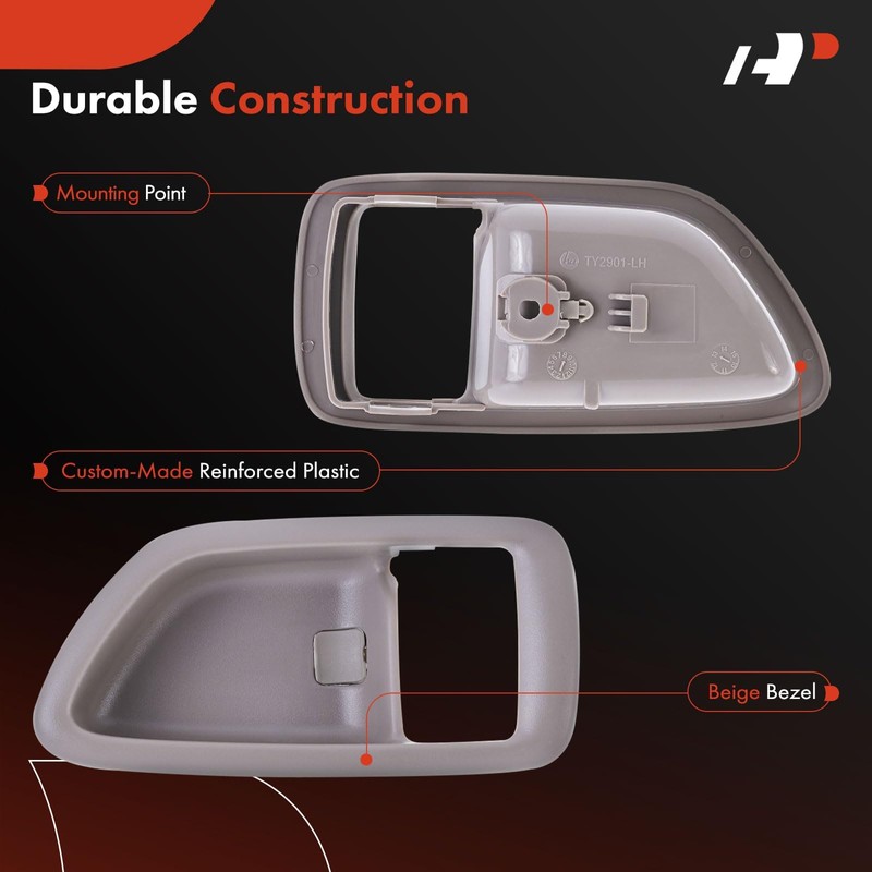 - [Specifications]: ① Package Included: 1x Front or Rear Driver Side Interior Door Handle Bezel; ② Color / Finish: Beige; ③ Material: Plastic; ④ Condition: New; ⑤ Fitment Type: Direct Replacement