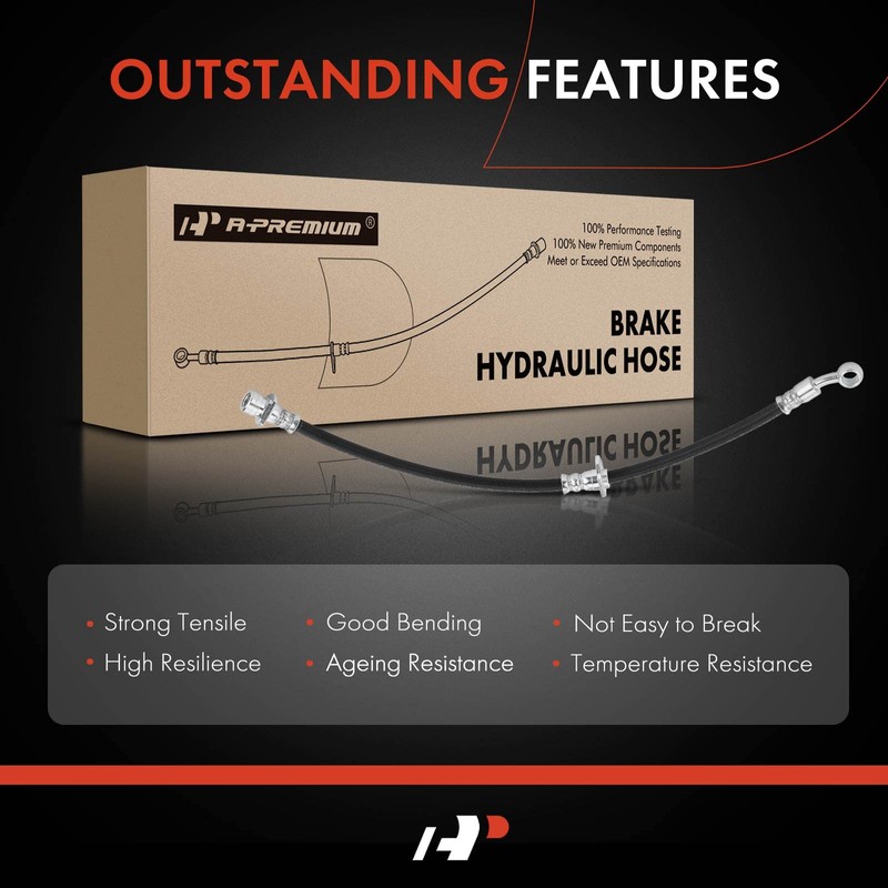 - [Superior Quality]: A-Premium Brake Hydraulic Oil Hose consists of EPDM rubber and stainless steel fittings, meeting DOT certification standards, Federal Motor Vehicle Safety Standards(FMVSS 106) and SAE J1401 Standards. Premium craftsmanship and materials ensure superior quality and durability, and excellent performance enhances the whole braking system.