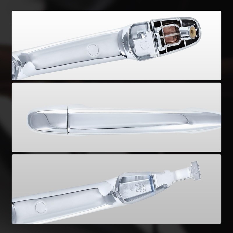 - [Specifications]: ① Package Included: 1x Front Right Passenger Side Exterior Door Handle; ② Color / Finish: Chrome; ③ Material: All Metal; ④ Key Lock Hole: No; ⑤ Condition: New; ⑥ Paintable: Yes