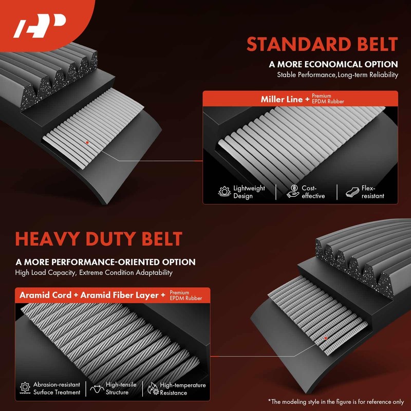 • [Heavy Duty Belt]: A-Premium's Heavy-Duty Serpentine Belt features multi-layer composite EPDM construction, resisting extreme heat and corrosion. Precision-engineered for silent, easy installation, its reinforced design ensures durability under heavy loads. Ideal for demanding applications requiring reliable performance