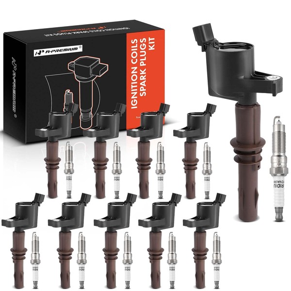 A-Premium Ignition Coils & Spark Plugs Kits Compatible with Ford F-150 2008-2010 F-250 F-350 F-450 Super Duty Mustang Lincoln Navigator 4.6L 5.4L 6.8L Iridium Black Set of 20
