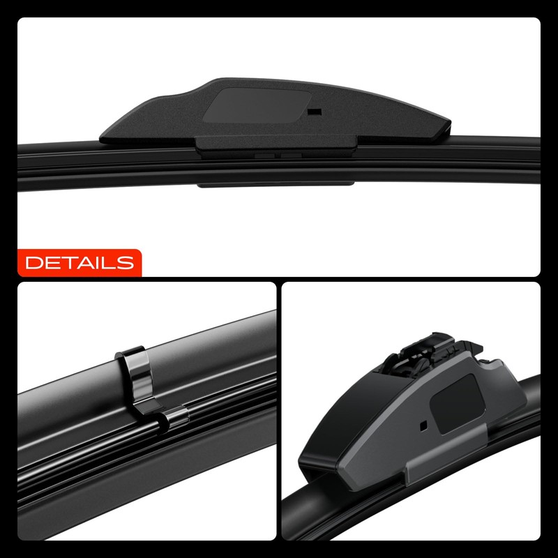 - [High-Performance Wiper Blade]: Featuring a dual-spring steel structure, constructed from high-tensile carbon steel, the windshield wiper blades maintain uniform pressure distribution across the entire glass curvature. This eliminates skipping/missed wiping caused by localized pressure points. The patented coating on the wiper blade ensures silent operation