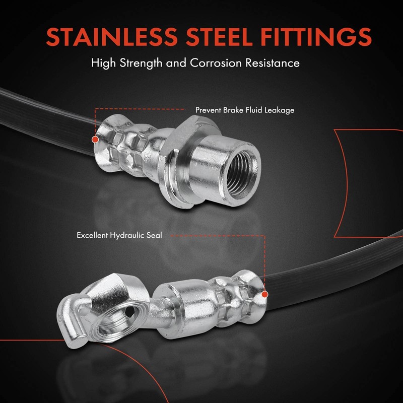 - [Superior Quality]: A-Premium Brake Hydraulic Oil Hose consists of EPDM rubber and stainless steel fittings, meeting DOT certification standards, Federal Motor Vehicle Safety Standards(FMVSS 106) and SAE J1401 Standards. Premium craftsmanship and materials ensure superior quality and durability, and excellent performance enhances the whole braking system.