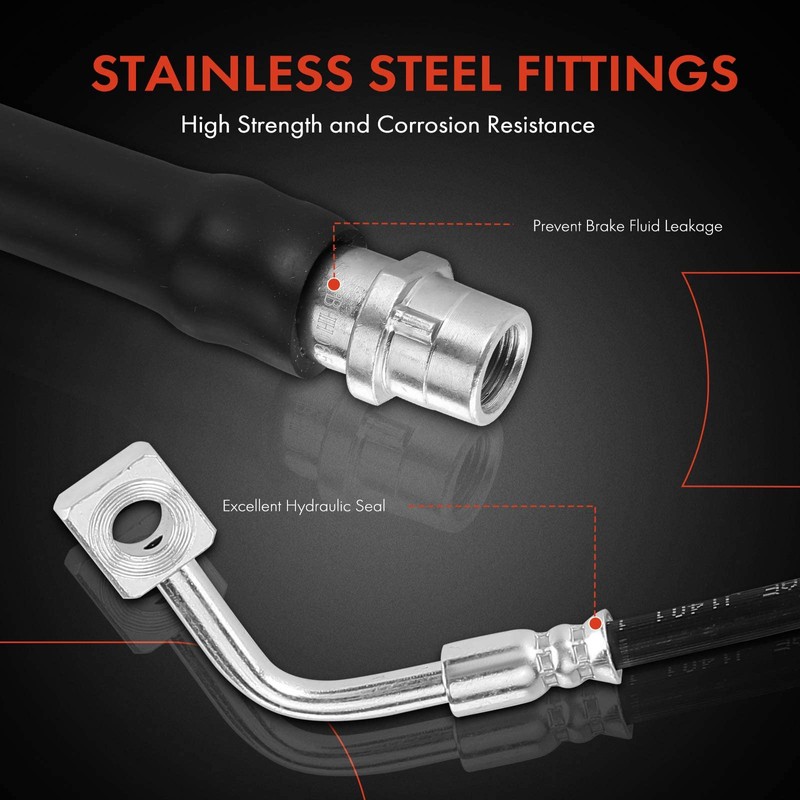 - [Superior Quality]: A-Premium Brake Hydraulic Oil Hose consists of EPDM rubber and stainless steel fittings, meeting DOT certification standards, Federal Motor Vehicle Safety Standards(FMVSS 106) and SAE J1401 Standards. Premium craftsmanship and materials ensure superior quality and durability, and excellent performance enhances the whole braking system.