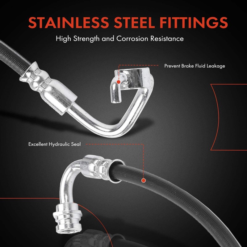 • [Superior Quality]: A-Premium Brake Hydraulic Oil Hose consists of EPDM rubber and stainless steel fittings, meeting DOT certification standards, Federal Motor Vehicle Safety Standards(FMVSS 106) and SAE J1401 Standards. Premium craftsmanship and materials ensure superior quality and durability, and excellent performance enhances the whole braking system.