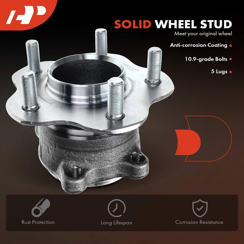 - [High Load Capacity]: A-Premium wheel bearings and hub assembly comes with ball bearing, which can provide perfect axial and radial loads capacity, and meet the daily driving condition. Additionally, the wheel studs are made of sturdy steel, and the specification is same as original, which fits the current disc rotor, wheel and nuts, making the old rusted wheel bearings hub assembly look like new.