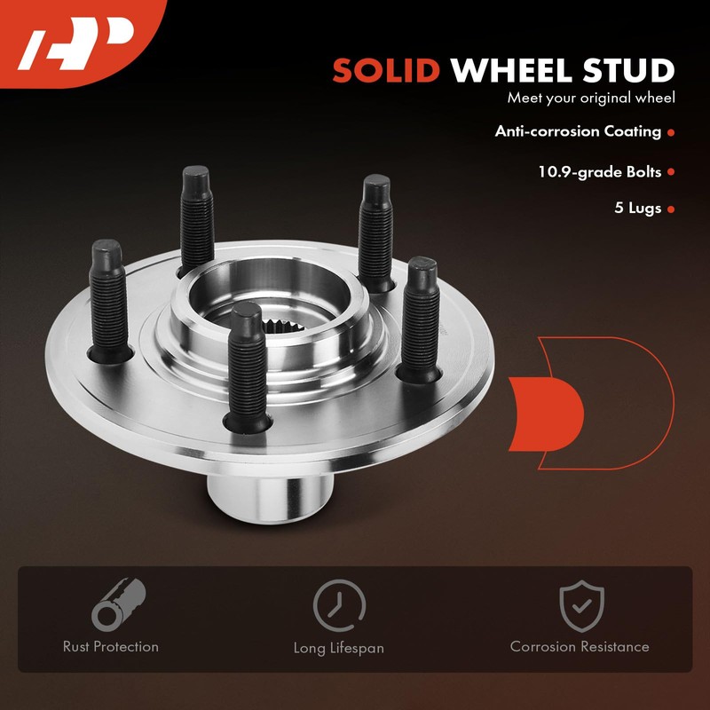 - [High Load Capacity]: A-Premium wheel hub comes with wheel bearing, which can provide perfect axial and radial loads capacity, and meet the daily driving condition. Additionally, the flange is made of sturdy steel, and the specification is same as original, which fits the current disc rotor, wheel and nuts, making the old rusted wheel bearing and wheel hub kit look like new.