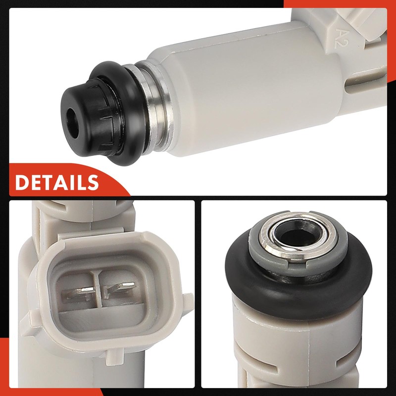 - [Specification]: ①Fuel Type: Gas; ②Terminal Gender: Male; ③Terminal Quantity: 2; ④Terminal Type: Blade; ⑤O-Rings Included: Yes, preinstalled; ⑥Injector Design: Metal and composite plastic
