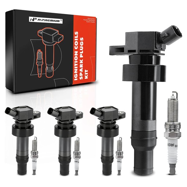 A-Premium Set of 4 Ignition Coil Pack and Iridium Spark Plugs Compatible with Hyundai Veloster 2012-2017, Accent & Kia Rio Soul 2012-2019, 1.6L Naturally Aspirated
