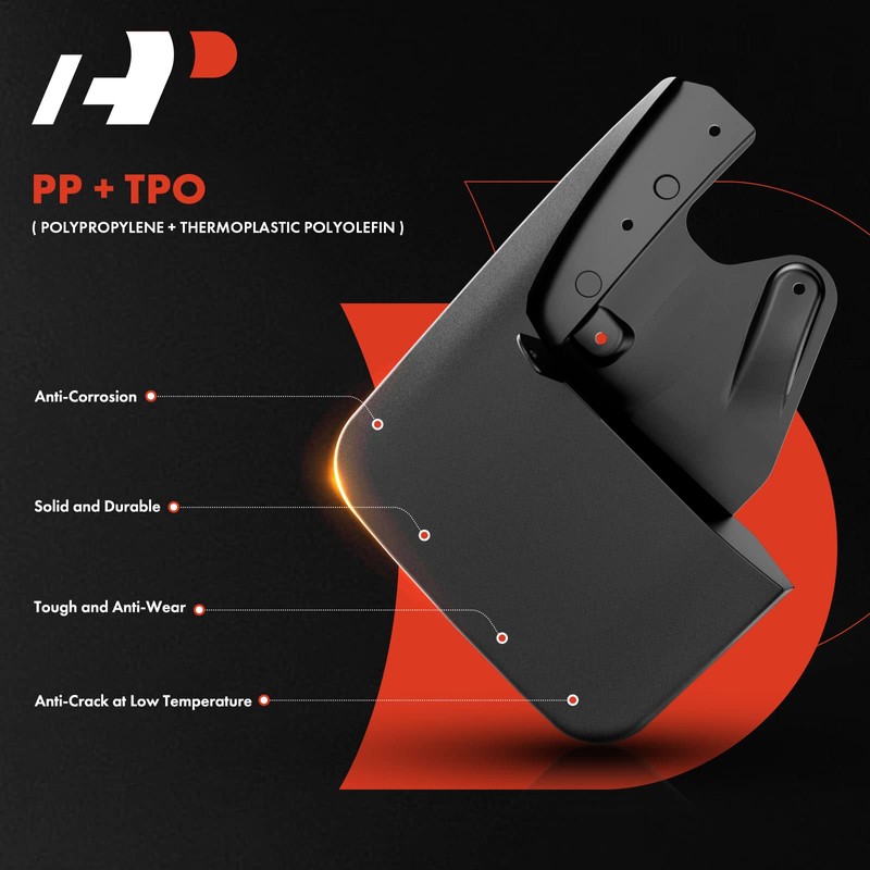- [Benefits]: A-Premium mud flaps are made of outstanding materials pp+tpo, involving features sturdy, durable, flexible, anti-corrosion, crack resistant that can strengthen the safe work of fenders in all harsh environments.