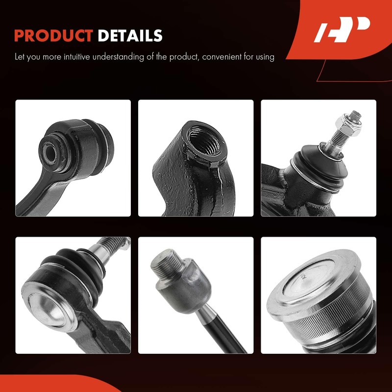 • [Package Detail]: 2 x Front Upper Control Arm Assembly, 2 x Front Outer Tie Rod End, 2 x Front Inner Tie Rod End, 2 x Front Lower Ball Joint
