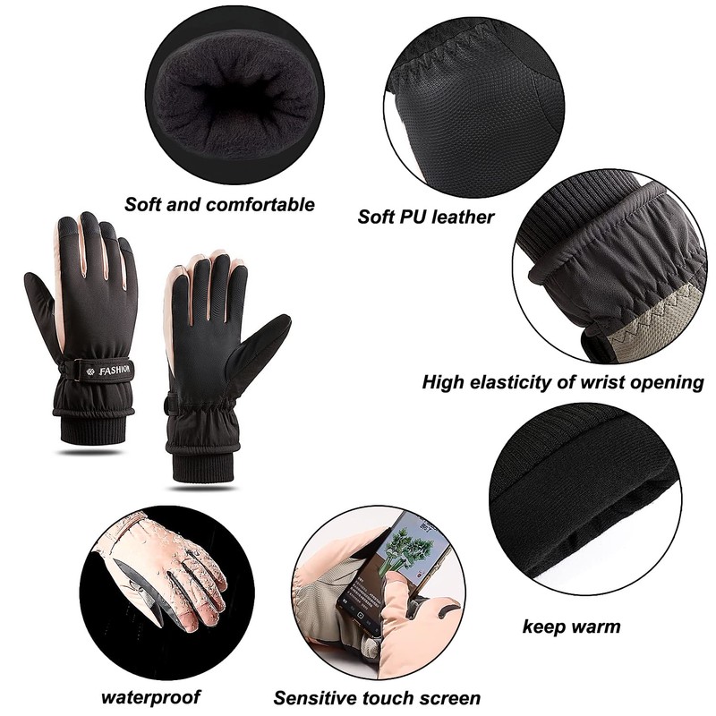 Women's ski touch screen waterproof gloves keep you warm all day long. They are your best daily companion for jogging, walking, shoveling snow, snowing, driving, cycling, etc. in cold winter.