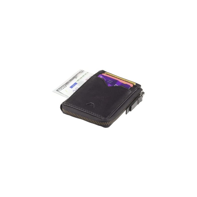 A-SLIM Compact Leather Card Holder Wallet with 2 Sided Zip + RFID Protection IRO (Black)