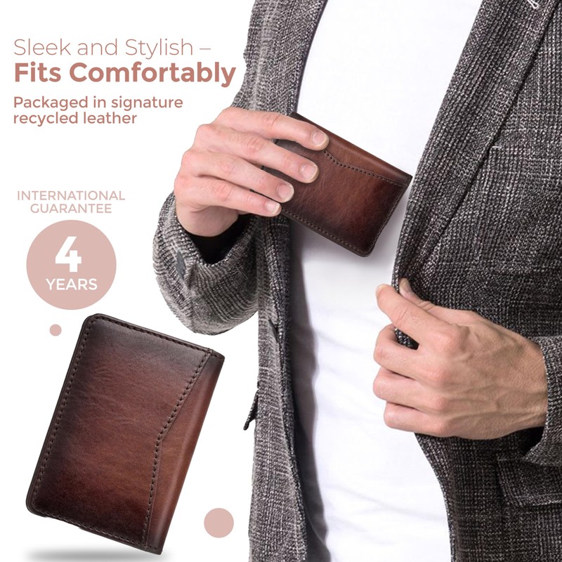 - RFID CARD HOLDER: Our RFID wallets offer protection from electronic theft, giving you peace of mind. We use internationally accredited RFID blocking material to keep your contactless card data safe and secure.