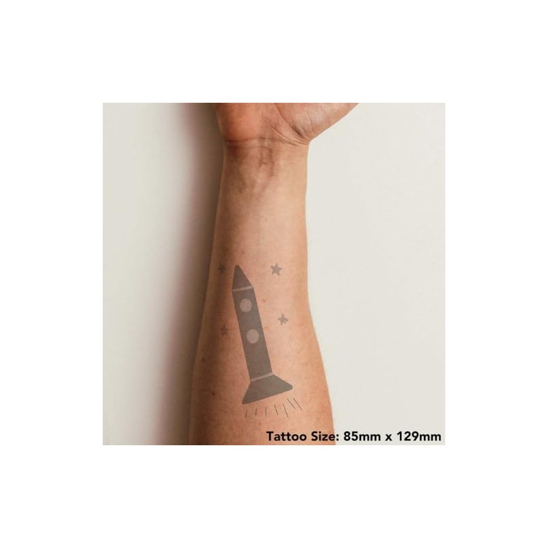 'A Space Rocket Adventure ' Temporary Tattoo - Water Resistant, Skin-Safe, Non-Toxic Transfer (TO00073699)