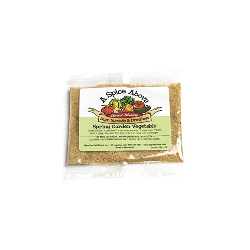 - ''' QUALITY: All dips are all natural with absolutely no MSG, no preservatives, and are always gluten free!#||# EASY TO MAKE: A Spice Above dips, spreads and dressings are all very simple to prepare. All you have to do is combine with a few other ingredients listed on the package, stir and chill in the fridge. They are mess-free, all natural, and delicious!#||# FLAVOR: One taste of these dips and you will be hooked! These dips and seasonings are best sellers and customer favorites. Always made with fresh ingredients that you can taste!#||# VERSATILE: Most of the dips can be used in versatile ways, like spreading over bread, dipping for veggies, or eating with chips. They can be eaten with seafood, meat, cheese, and vegetables.'''