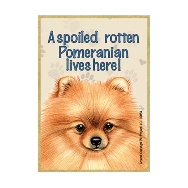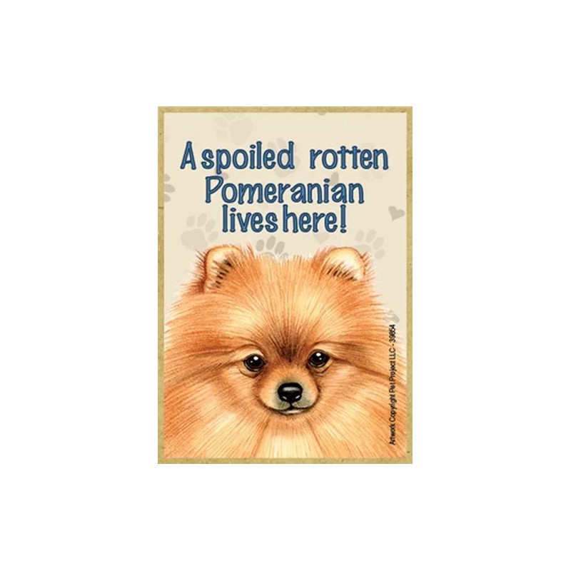 A spoiled rotten Pomeranian lives here! Wood Fridge Locker Magnet 2.5X3.5 NEW