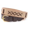 A Tail We Could Wag Cotton & Leather Belt - Handmade Guatemalan Cotton Weave with Colorful Patterns & Solid Brass Buckle | Block Island | Sand, 38"