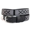A Tail We Could Wag Cotton & Leather Belt - Handmade Guatemalan Cotton Weave with Colorful Patterns & Solid Brass Buckle | Block Island | Slate, 38"