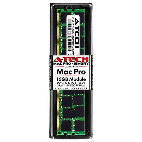 A-Tech 16GB ECC RDIMM Memory for Mac Pro Mid 2010 & Mid 2012 (MacPro5,1) | DDR3 1333MHz ECC Registered DIMM PC3-10600 Dual Rank 2Rx4 1.5V 240 Pin RAM Upgrade