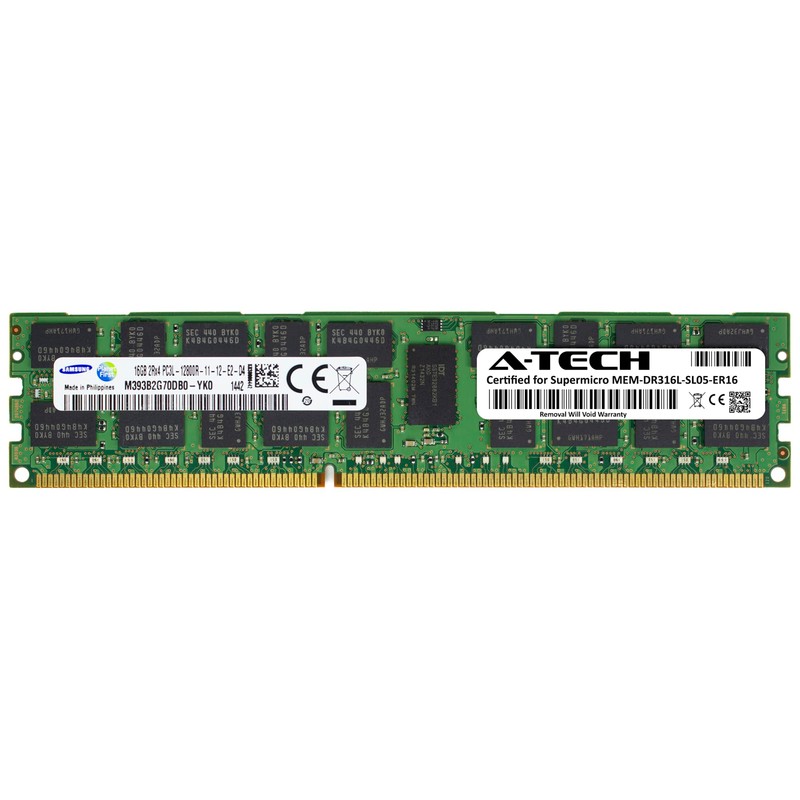 A-Tech 16GB RAM Replacement for Supermicro MEM-DR316L-SL05-ER16 | DDR3/DDR3L 1600MHz PC3L-12800 ECC RDIMM 2Rx4 1.35V 240-Pin Registered DIMM Memory Module