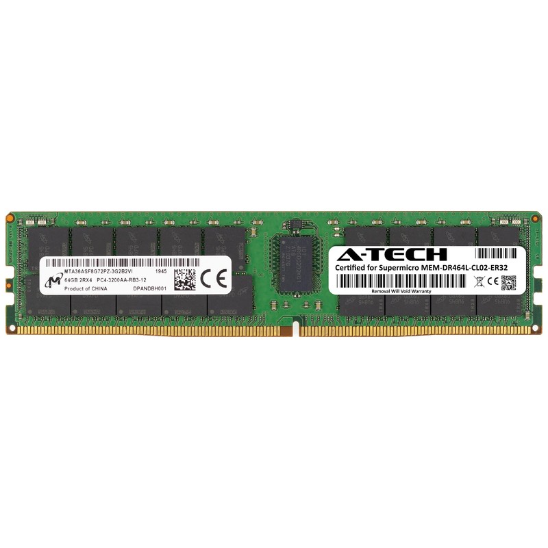 A-Tech 64GB RAM Replacement for Supermicro MEM-DR464L-CL02-ER32 | DDR4 3200MHz PC4-25600 ECC RDIMM 2Rx4 1.2V 288-Pin Registered DIMM Memory Module MTA36ASF8G72PZ-3G2B2